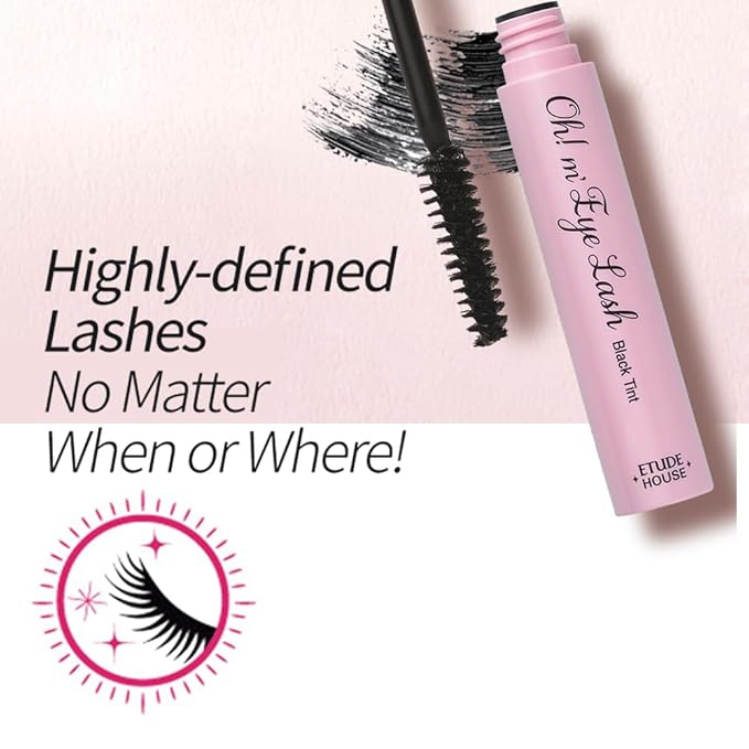 ETUDE Oh M'Eye Lash Black Tint Mascara – Natural Glossy Effect with Long Lasting Strong Curl System, Volume Enhancing, Smudge-Free, Improved fixation and water resistance, Korean Makeup, Kbeauty