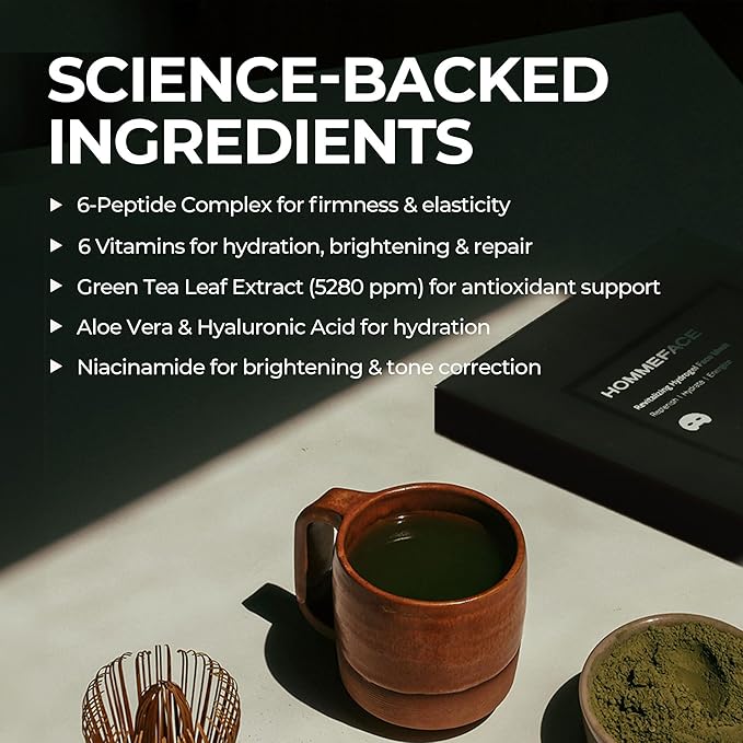 HommeFace Men’s Revitalizing Hydrogel Facial Mask Set (5ct) - Hydrating, Beard-Friendly, Anti-Aging, Soothing Face Sheet Masks - Korean Skincare Technology with Hyaluronic Acid, Vitamins & Peptides