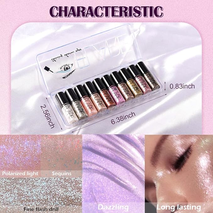 10Pcs Colorful Liquid Glitter Eyeshadow & Eyeliner Sticks Kit – Korean Shimmer Metallic Eye Makeup, Quick-Drying & Waterproof, Vegan & Cruelty-Free, Silver Brown Pink Gold Sparkle sombras de ojos