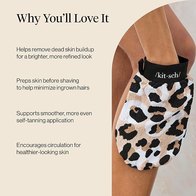 - GLOWING SKIN WITH EVERY USE – DEEP EXFOLIATION AT HOME - Exfoliate your way to glowing skin with the Kitsch exfoliating glove! Designed to gently remove dead skin, this skin exfoliating glove boosts circulation and helps stimulate skin cell renewal. Unlike regular mitts, this deep exfoliating glove delivers spa-quality results right at home.