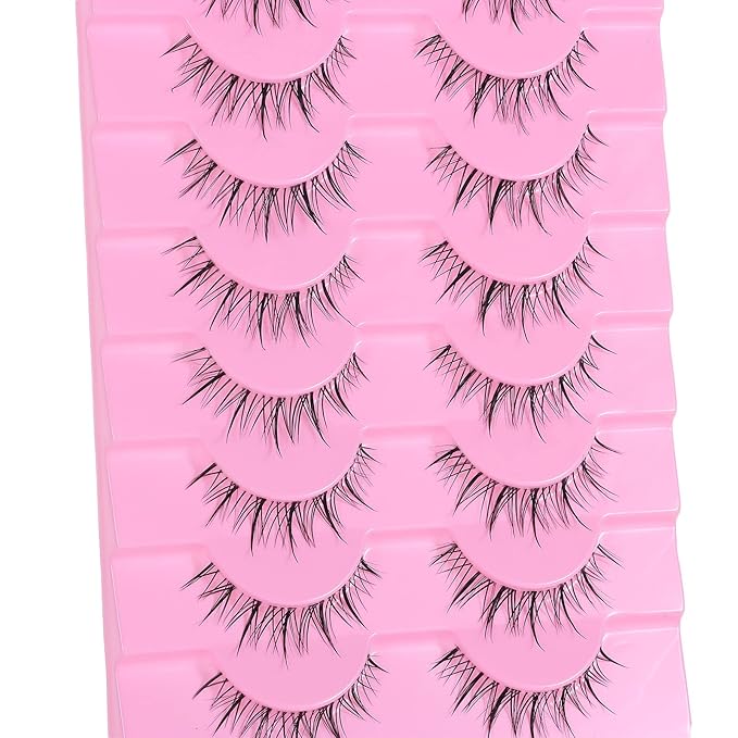 outopen 10 Pairs Manga Lashes Natural Look False Eyelashes Wispy Spiky Anime Lashes Korean Japanese Asian Style Cosplay Fake Eyelashes with Clear Band