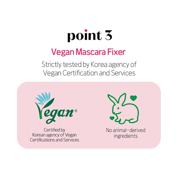 - Vegan Mascara Fixer: Strictly tested by Korea agency of Vegan Certification and Services