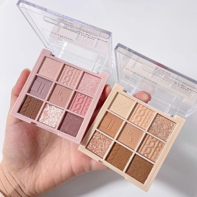 9Color Eyeshadow Palette Makeup, Matte Glitter Shimmer Korean Eye Shadow Palettes, Highly Pigmented Long Lasting Waterproof Blendable, Knit Violet Rose Gold Purple Pink Dark Brown Glitter Eye Makeup
