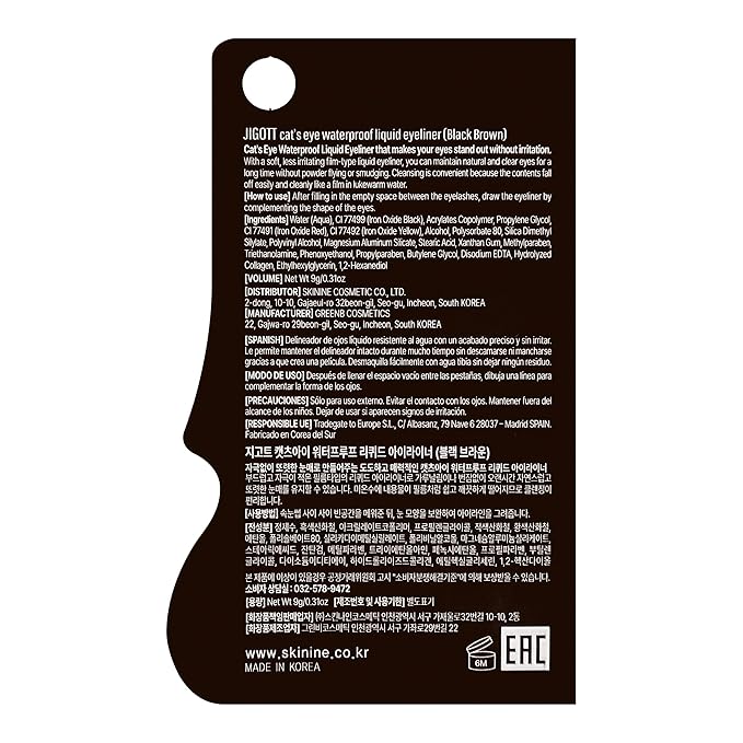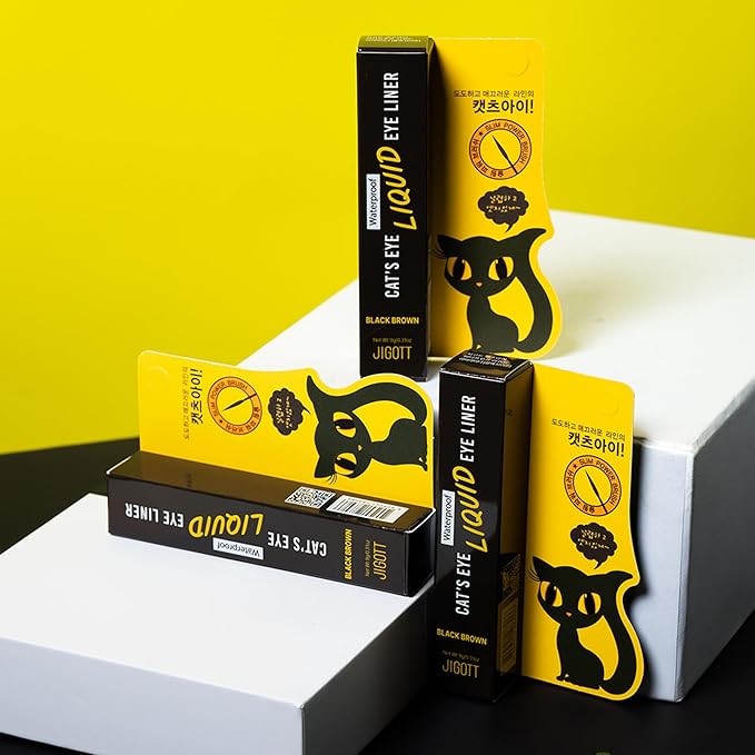 Jigott - Cat's Eye Waterproof Liquid Eyeliner (Black Brown) (0.31floz / 9g) - Korean Beauty Makeup, Smudge-proof, Long-lasting