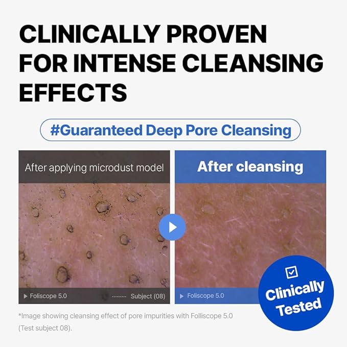 - Powerful Deep Cleansing Inside and Out: Effectively removes waterproof makeup such as mascara (cleanses 90.14%) and base makeup (cleanses 89.20%), while also targeting and purifying deep within pores, removing 99.41% of pore impurities and significantly reducing blackheads and whiteheads.