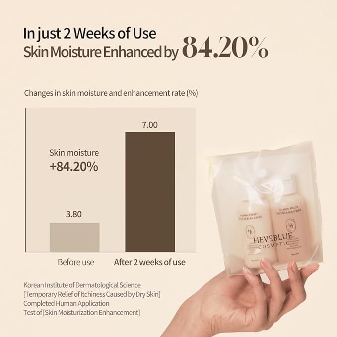 HEVEBLUE Salmon Fruity Centella Body Travel Kit - Body Cream & Body Wash Set, Sensitive Skin, Korean Bodycare, Hypoallergenic, Allergen-free, Salmon PDRN, Travel Size, Bodycare Set