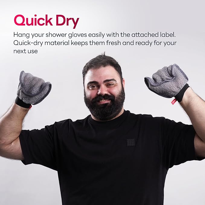 - [REUSABLE HOME AND TRAVEL ESSENTIALS ] Our glove for shower is reusable, and essential for home and travel use, offering sustainable grooming solutions for your family to comfort themselves. Please gently apply light pressure for optimal exfoliation and comfort