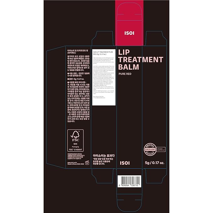ISOI Bulgarian Rose Lip Treatment Balm (Pure Red) – Hydrating & Tinted Lip Balm for Dry Lips, Korean Skincare (0.18 oz, 5g)