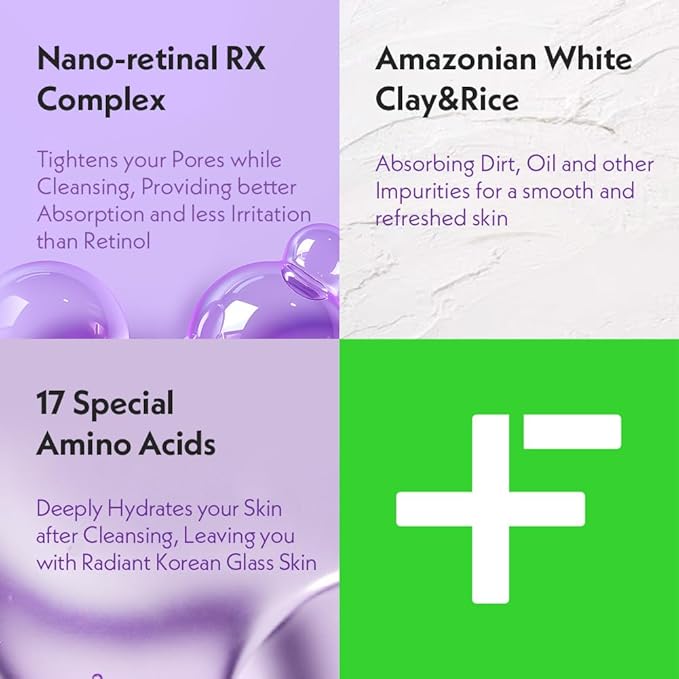 - POWERED BY 17 AMINO ACIDS & RETINAL RX COMPLEX: Boost skin health with a unique blend of amino acids and Retinal RX, delivering nourishment and supporting your skin while deeply cleansing.