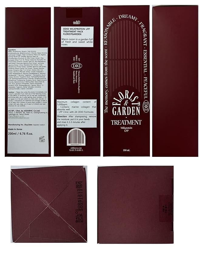 - MAXIMUM COLLAGEN CONTENT FOR ELASTICITY: Featuring the highest concentration of marine collagen at 5,000ppm, the ODID Milk Protein LPP Treatment Pack Florist Garden deeply penetrates to restore elasticity and strengthen hair fibers. Rich in minerals and vitamins, it rejuvenates brittle and damaged hair, providing resilience and bounce.