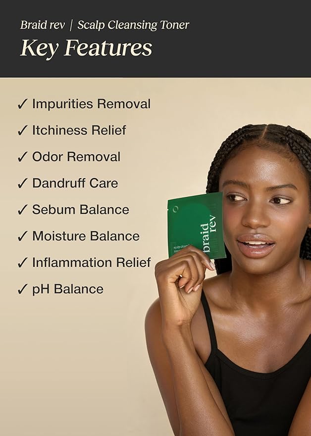 Braid Rev Scalp Cleansing Toner Pad, Korean Scalp Treatment, Apple Cider Vinegar Exfoliator, No-Rinse, Itchy Relief, Moisturizing, Travel Kit, 5 Sheets