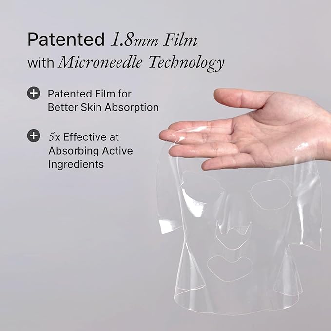 - Dual-Action Absorption Film: A two-step process combines a plumping ampoule with a patented film designed to adhere seamlessly to the face. The unique film enhances absorption, deeper hydration, and maximizes delivery of active ingredients.