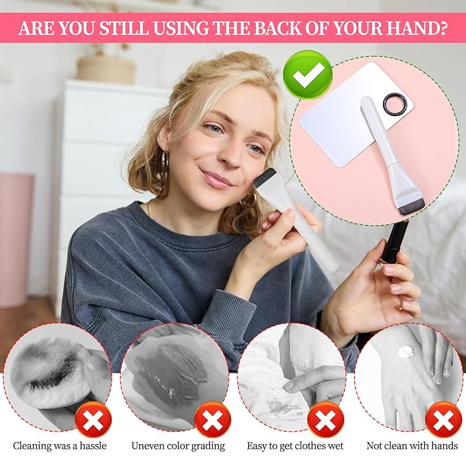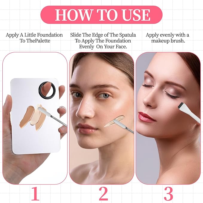 - Makeup Scraper and Palette Set: This set includes a foundation palette, a double-headed makeup scraper and a makeup brush. The design is lightweight and portable, and does not take up extra space