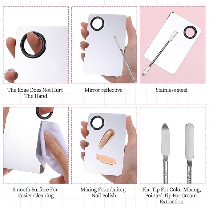 - Metal Material: The makeup palette is made of stainless steel, with a smooth and durable surface. It is not easy to have obvious scratches even after long-term use. Compared with acrylic material, it is more suitable for carrying out