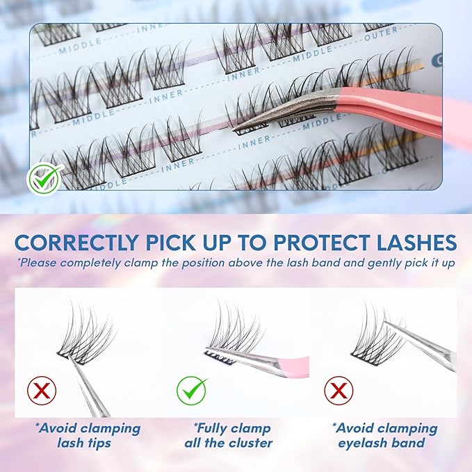 - 【High Quality & Reusable DIY Eyelash Extensions】Eyelash clusters are made of high-quality fibers, knots-free, soft, lightweight, cruelty-free. Clusters are soft and light, easy to pick up and apply, will not break down, no irritation. With proper care, each eye lash cluster wispy can be reused, providing a cost-effective way to keep your lashes looking amazing all the time.