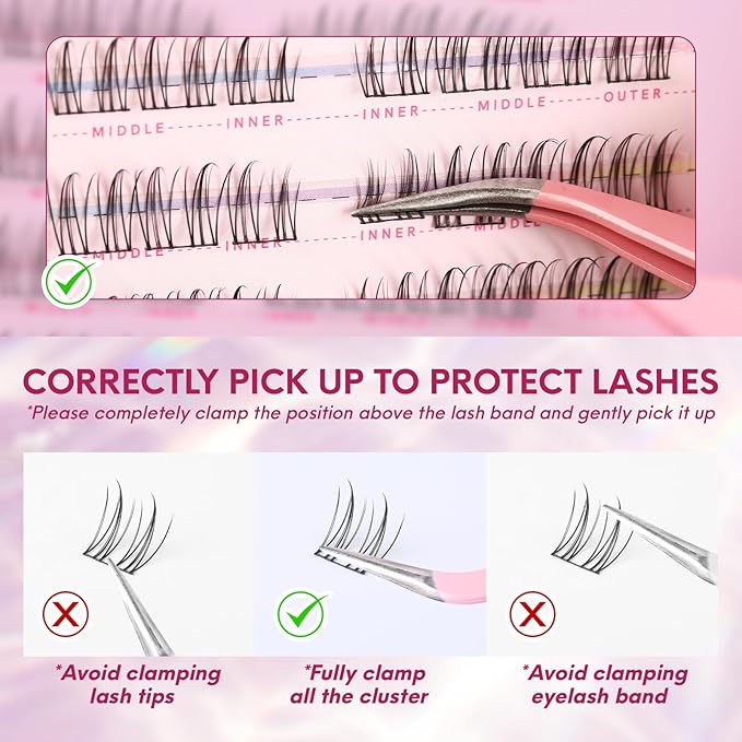 - 【High Quality & Reusable DIY Eyelash Extensions】Eyelash clusters are made of high-quality fibers, knots-free, soft, lightweight, cruelty-free. Clusters are soft and light, easy to pick up and apply, will not break down, no irritation. With proper care, each eye lash cluster wispy can be reused, providing a cost-effective way to keep your lashes looking amazing all the time.
