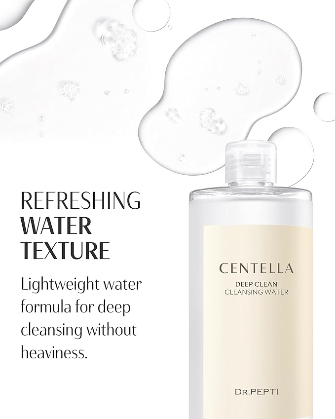 DR.PEPTI Centella Deep Clean Cleansing Water - Korean Micellar Makeup Remover Face Cleanser - pH Balancing Hydrating Gentle for Sensitive Dry Skin Apple Amino Acids Peptides, 13.5 fl.oz.