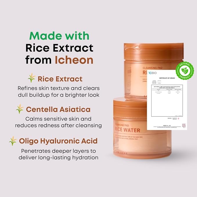 - RICE WATER FROM ICHEON Natural rice water extract supports pore care and mild exfoliation, leaving skin smoother, softer, and perfectly balanced.