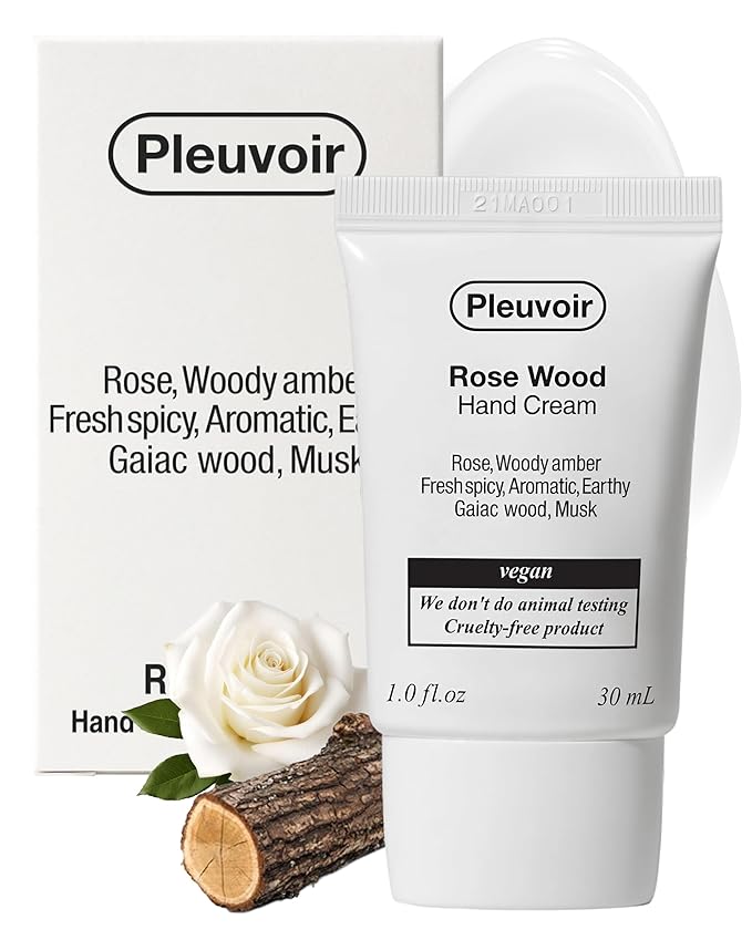 Pleuvoir Hand Cream Rose Wood - Fresh Blooming Rose Smoky Woody Scent - Lightweight, Non-Sticky Moisturizing with Shea Butter, Hyaluronic Acid and Jojoba Oil - Vegan Korean K-Beauty, 1oz