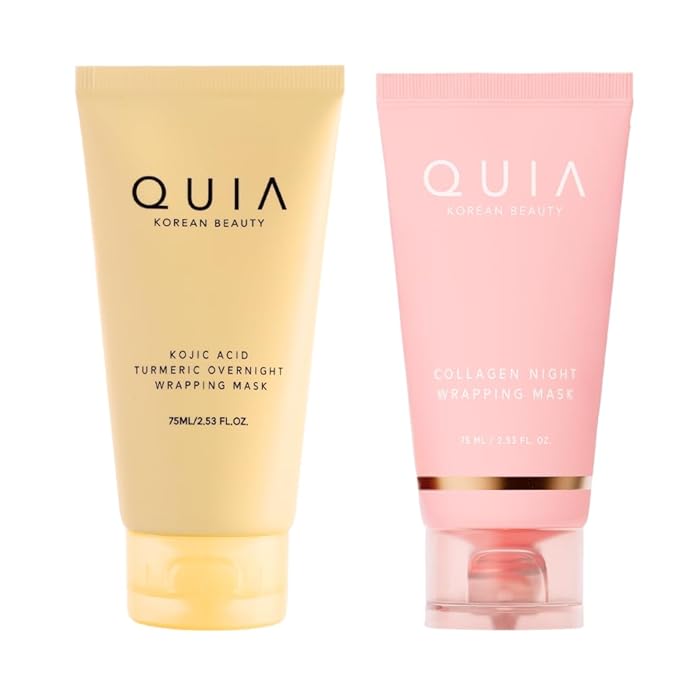 QUIA Collagen + Turmeric Overnight Wrapping Mask Duo – Firming and Hydrating Peel-Off Set for Elasticity, and Glow – Korean Skincare 2 x 75ml