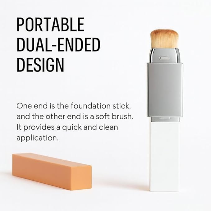 - Dual-Ended Design with a Soft Detachable Brush:This foundation stick includes a detachable blending brush for effortless, mess-free application. The brush helps buff the cream formula evenly across the skin, making it ideal for daily use or on-the-go touch-ups.