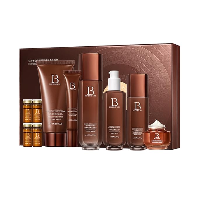 - 【Luxurious Skincare Ingredients】Formulated with natural ginseng extract, this set harnesses ginseng's potent antioxidant properties to enhance skin elasticity, promote collagen regeneration, diminish fine lines and dullness, and restore a youthful, radiant complexion.